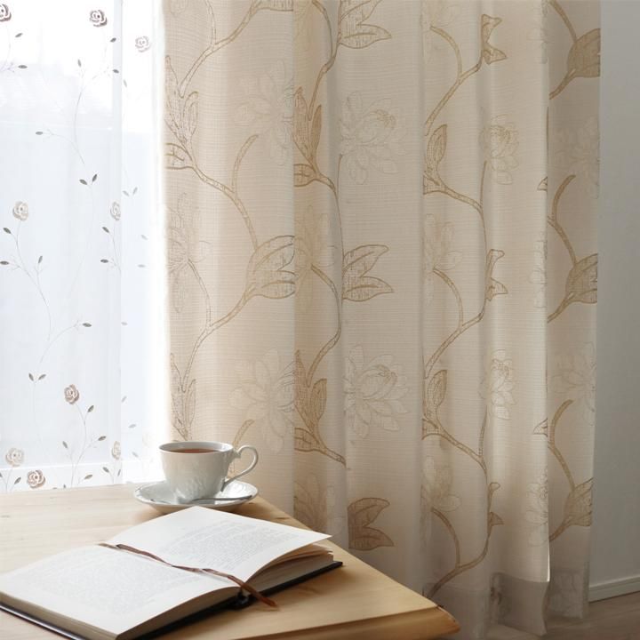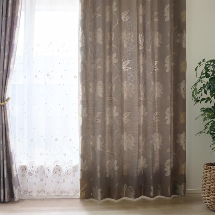 無料サンプル 和モダンデザイン|ジャガード花柄カーテン【 Lotus ロテュス CH1301アイボリー・CH1304グリーン CH1305 ブラウン 】