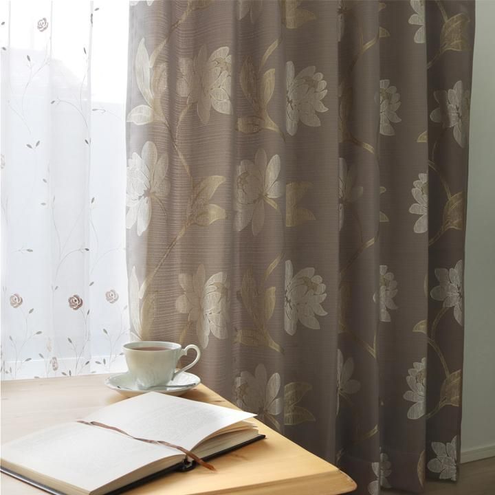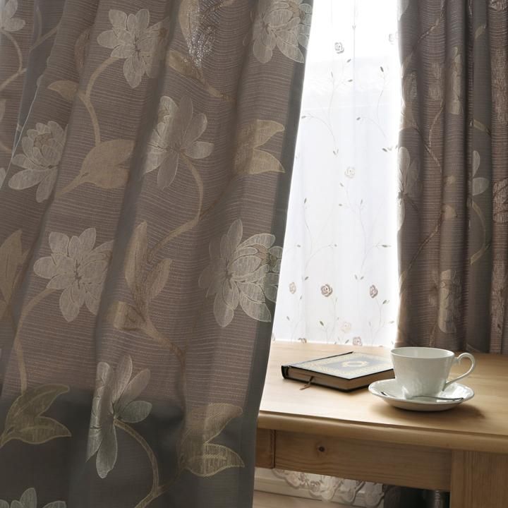 和モダンデザイン|ジャガード花柄のドレープが美しい形状記憶カーテン 【 CH1305 Lotus ロテュス BR ブラウン 】
