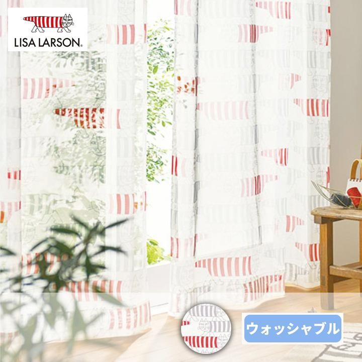 北欧デザイナー リサ・ラーソン ふんわりとしたボイル生地が光を取り込んで、お部屋に楽しい空間を届けます。 【 ボイル Mikey マイキー K1043 RD/BK レッドブラック 】