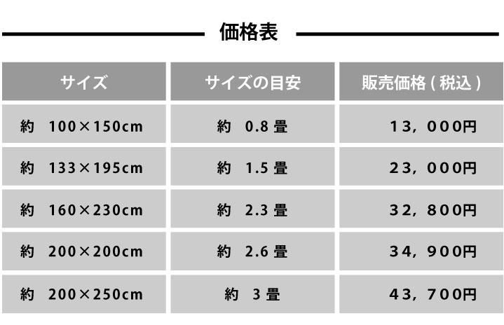 | サイズ | 約 100 × 150cm 約 133 × 195cm 約 160 × 230cm 約 200 × 200cm 約 200 × 250cm |