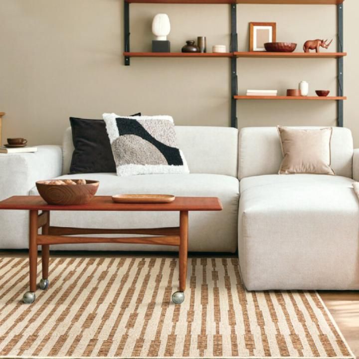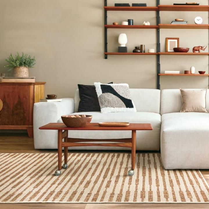 プレーベルの新作「マアム(MAAM)」は、北欧スタイルの温もりとミニマルな美しさを融合したフラットウィルトンラグ。細やかなストライプパターンが空間にリズムを生み、チークやオークの家具とも相性抜群。ポリプロピレン100%の高耐久素材で、遊び毛が出にくくお手入れも簡単。フラットなパイルが家具の下でも引っかからず、ホットカーペット・床暖房対応で一年中快適に使えます。トルコ製の確かな織り技術により、薄手ながらもほどよい弾力感と快適な踏み心地を実現。ナチュラルでおしゃれな空間づくりにぴったりの、機能性とデザイン性を兼ね備えた北欧モダンラグです。